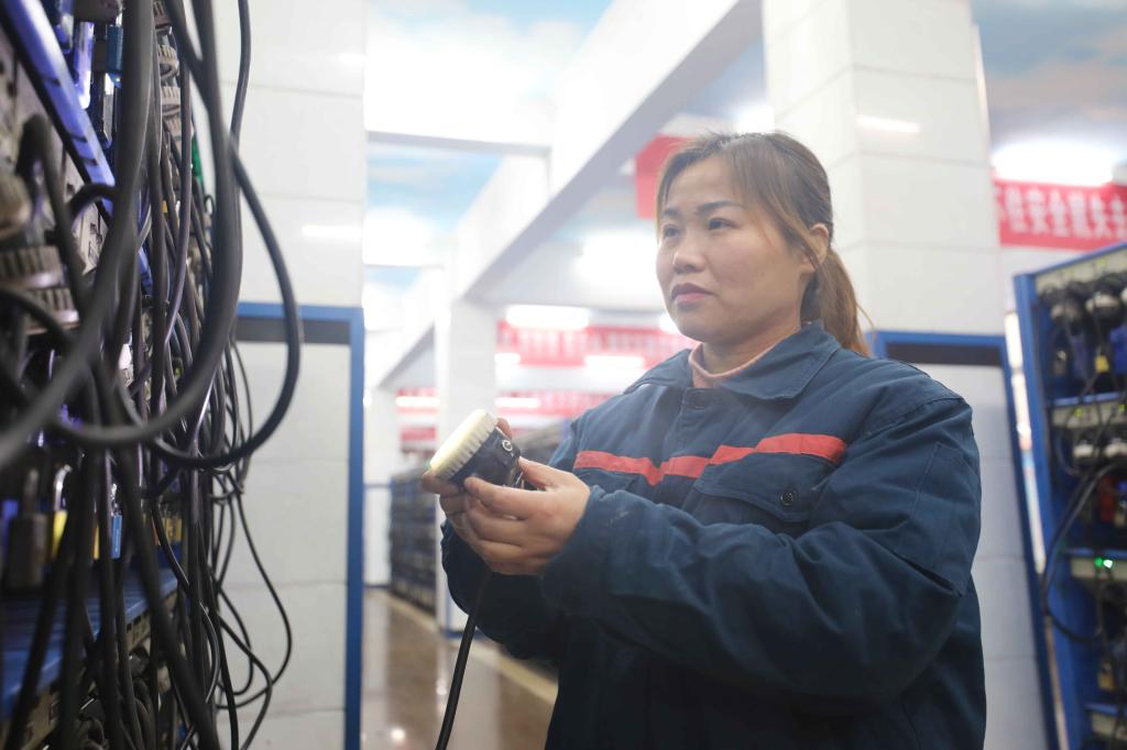 “這顆螺絲松動(dòng)了,你抓緊安排處理?!卑踩珕T朱建成把現(xiàn)場(chǎng)發(fā)現(xiàn)的問題反饋到班長王磐。