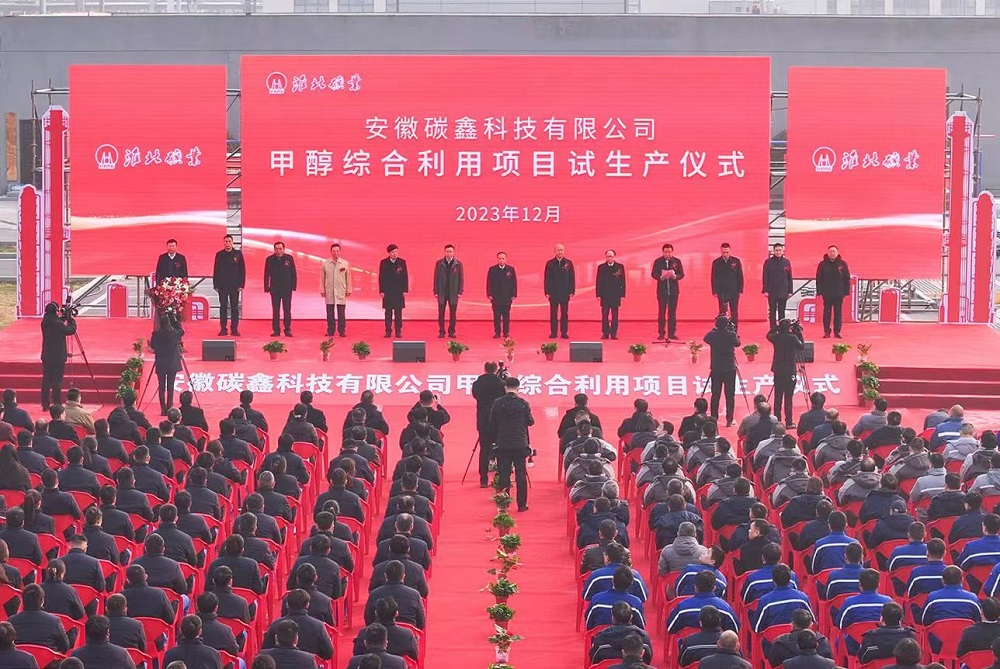 (2023年12月28日,碳鑫科技公司甲醇綜合利用項(xiàng)目試生產(chǎn)儀式舉行。)
