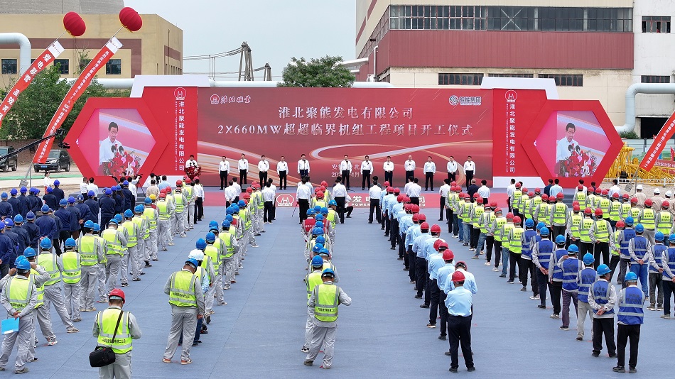 4月28日,淮北聚能發電有限公司2×660MW超超臨界機組工程項目舉行開工儀式。安徽省國資委黨委委員、副主任李向陽,淮北市委常委、市政府常務副市長汪繼宏,淮北礦業集團黨委副書記、總經理孫方出席儀式并分別致辭。淮北礦業集團黨委常委、總會計師周四新主持儀式。
