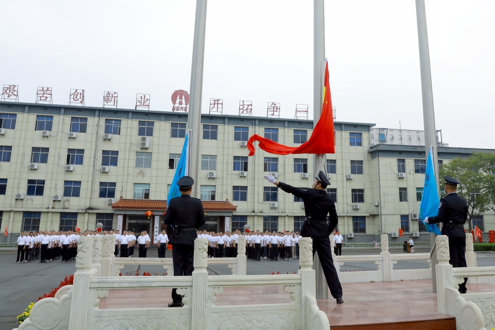 在雄壯的《國歌》聲中,鮮艷的五星紅旗冉冉升起,現場干群行注目禮,表達對祖國的赤誠之情和崇高敬意。升國旗儀式后,在激昂奮進的《淮北礦業之歌》聲中,淮北礦業集團旗幟緩緩升起,大家心潮澎湃,激情滿懷,自豪感和榮譽感油然而生。