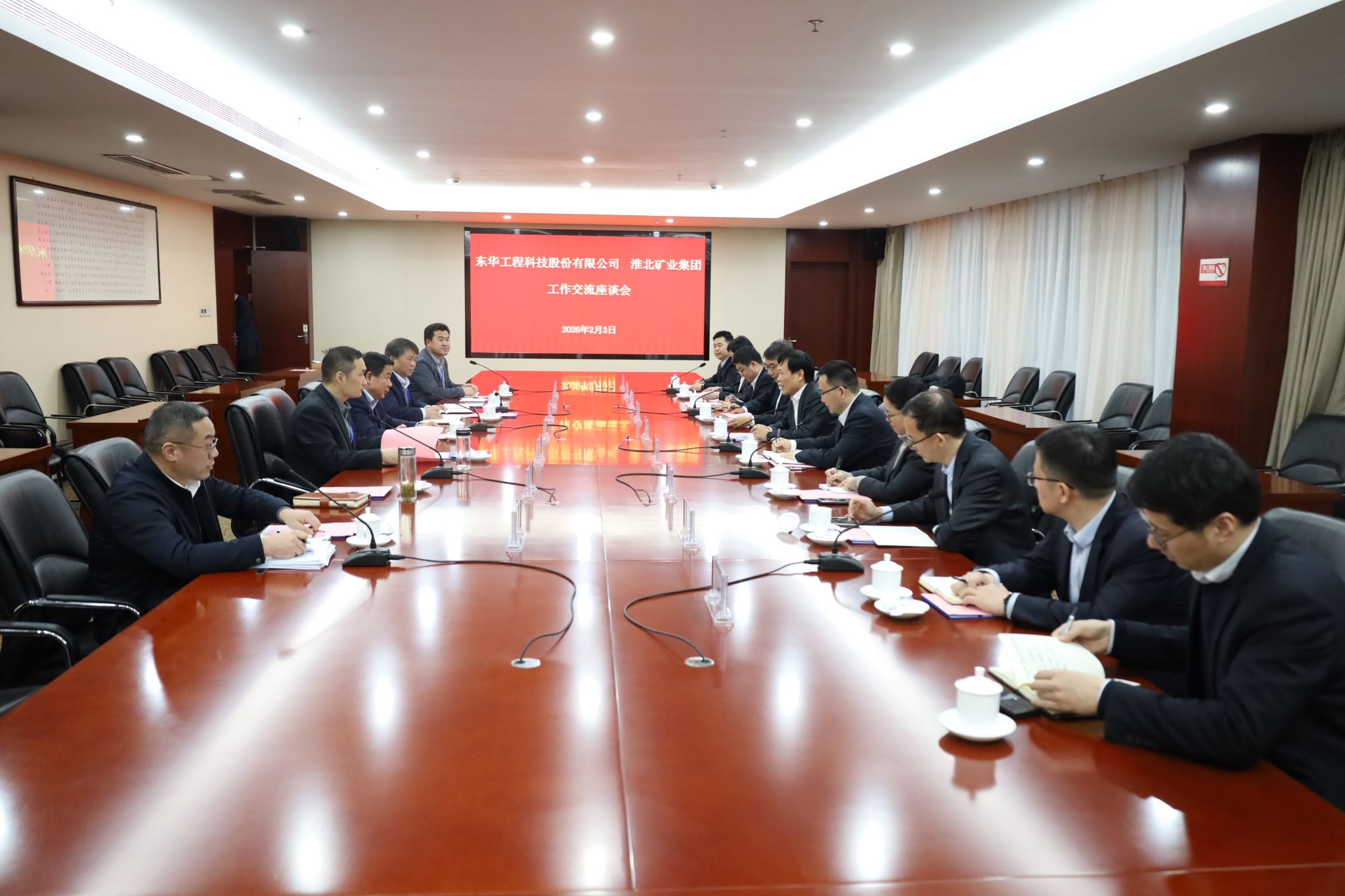 2月3日,淮北礦業集團與東華工程科技公司舉行工作交流座談會。淮北礦業集團黨委書記、董事長、總經理孫方,淮北礦業財務總監殷召峰;東華工程科技公司黨委書記、董事長李立新,黨委副書記、總經理孟陳周,黨委委員、副總經理葉平,以及雙方相關部門負責人參加座談。