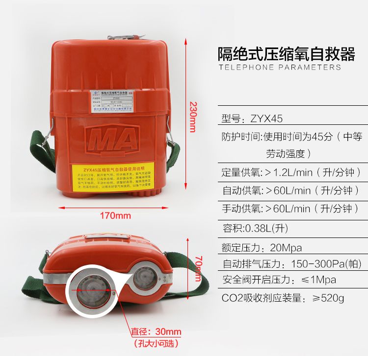 ZYX45隔絕式壓縮氧自救器。