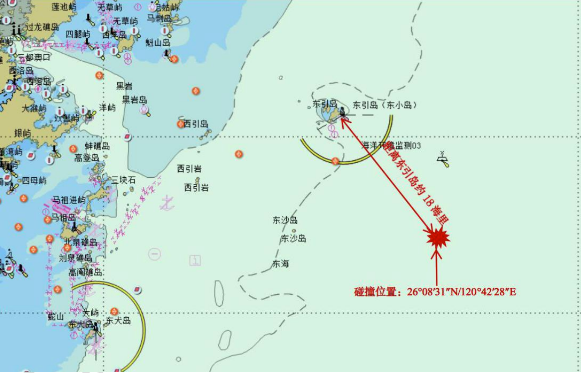 2023年2月8日,安提瓜和巴布達籍雜貨船“BBCONYX”輪從江蘇揚州港駛往新加坡途中,在馬祖列島東引島東南約18海里處,與福建連江籍漁船“閩連漁60996”輪發生碰撞。事故造成“閩連漁60996”輪沉沒,1人死亡、7人失蹤。